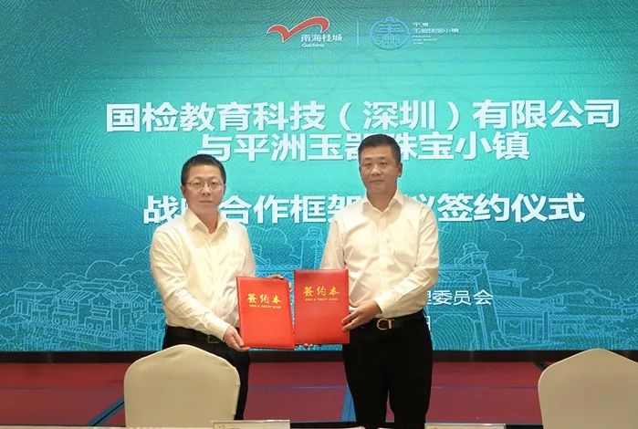 在当天的联席会议上,平洲玉器珠宝小镇管理委员会还与国检教育科技(深圳)有限公司、深圳国艺珠宝艺术品资产评估有限公司、国艺珠宝艺术品数据服务(深圳)有限公司三个单位签订了战略合作框架协议。