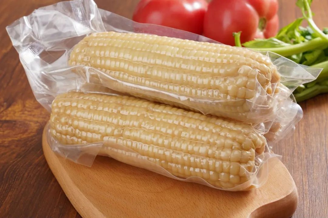 玉米需要进行首次冷却,确保没有余热后进行装袋、抽干空气!再次进行高温除菌 ,同时将玉米蒸熟,二次冷却烘干,吹干包装袋上的水份之后,直接装入箱内。