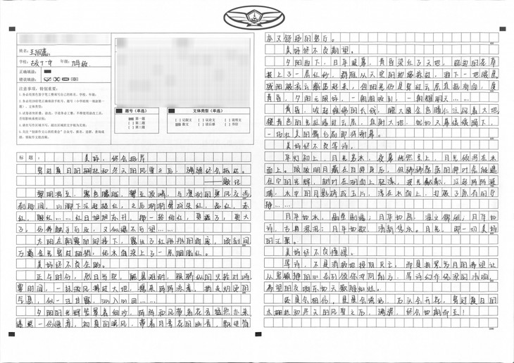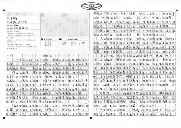 孩子从小喜欢读书,更喜欢给每一个故事改写不一样的结局,我们鼓励她创作属于自己的文章,这次选材能让她从小小的题目看到人间社会,让我们刮目相看,希望她可以继续保持写作的劲头,再创佳绩!