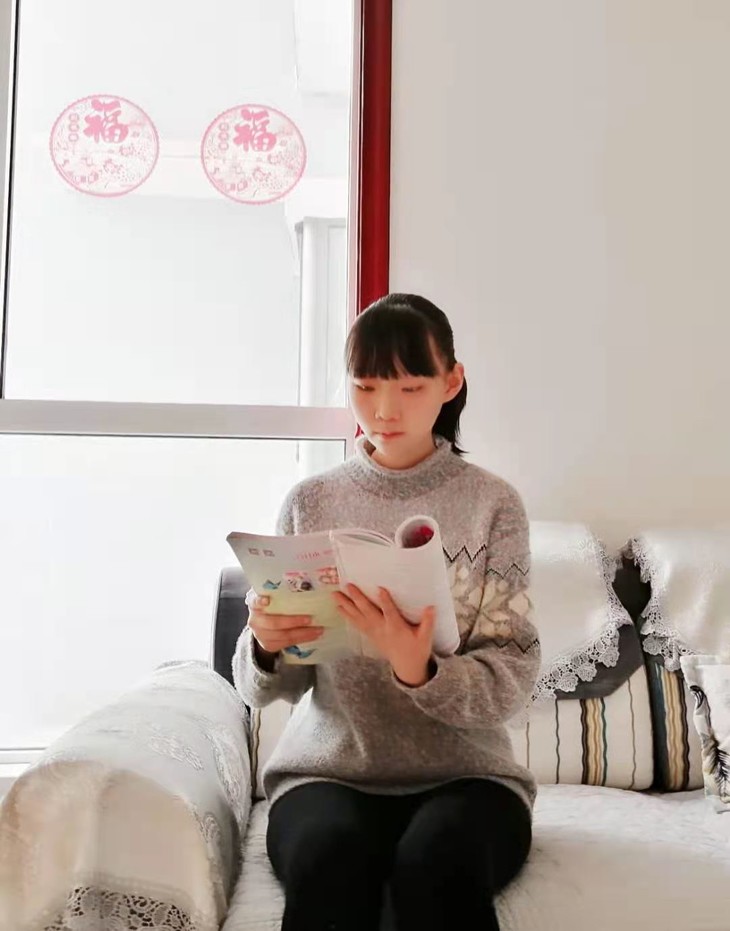 孩子自幼便喜欢看书,抱着一本书,一坐就是一下午。孩子说当她沉浸在书的世界中时,感到全身都很轻松,很舒服,我认为这是一种很好的状态。希望她可以继续保持对书的热爱,在写作上再创佳绩。