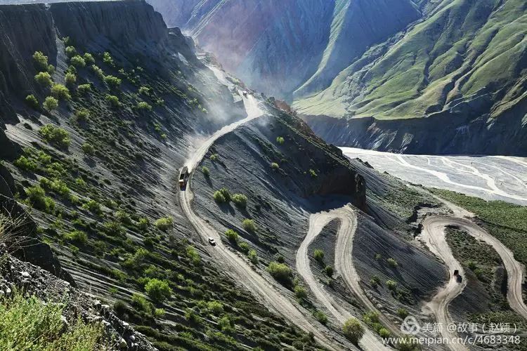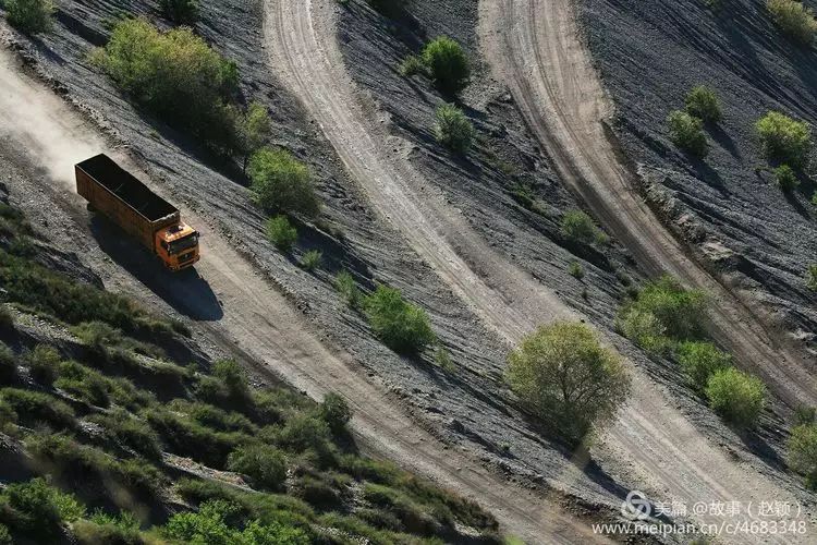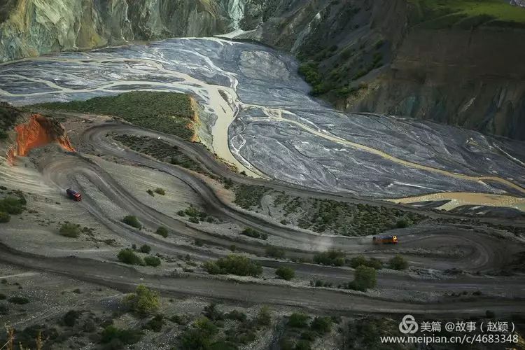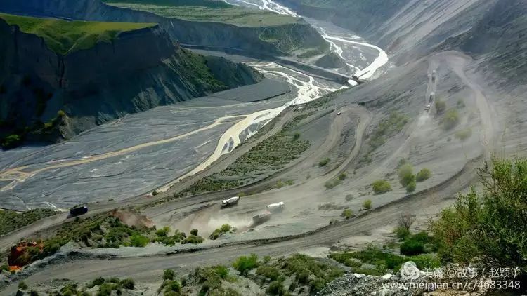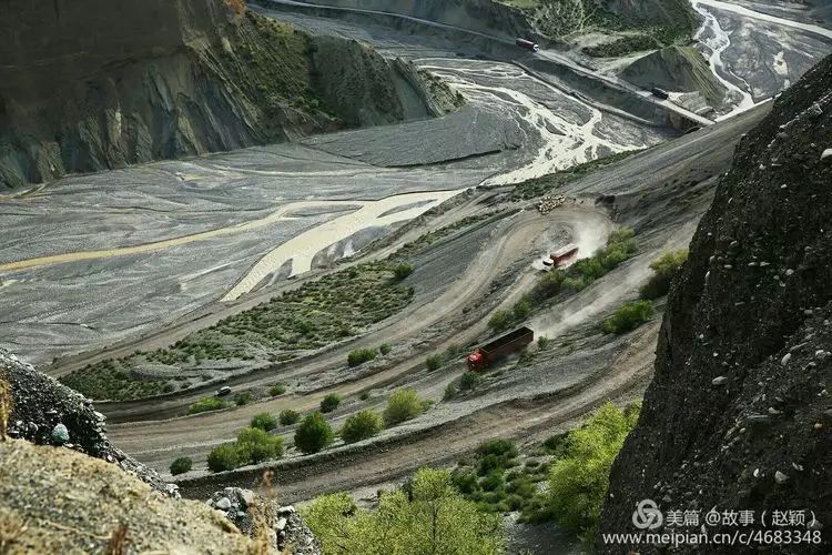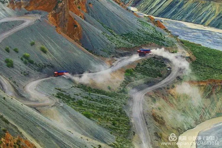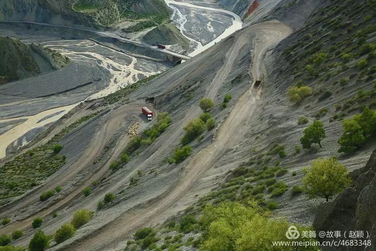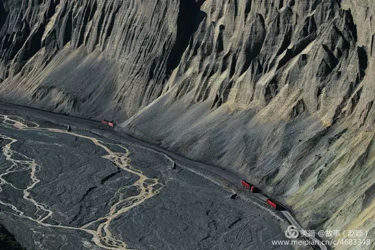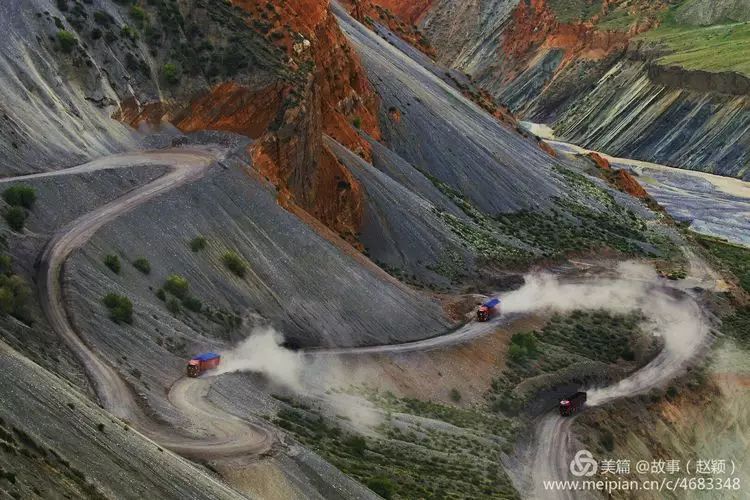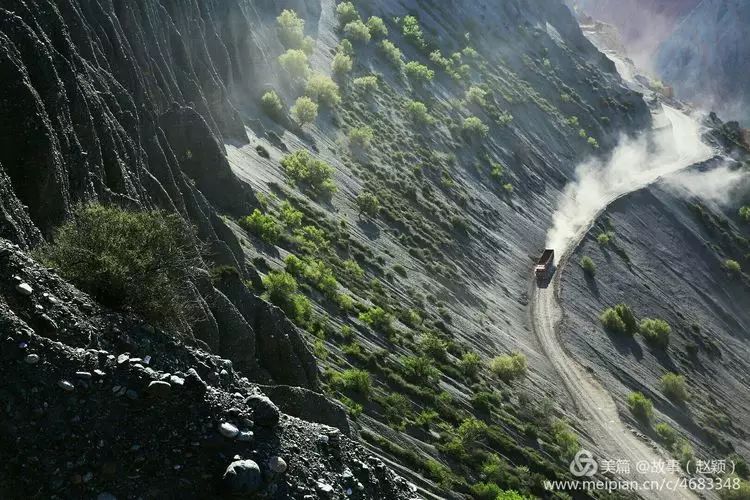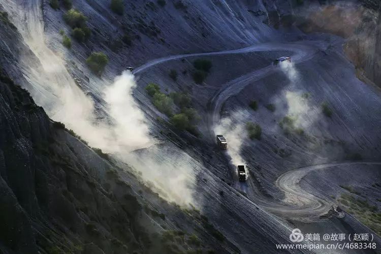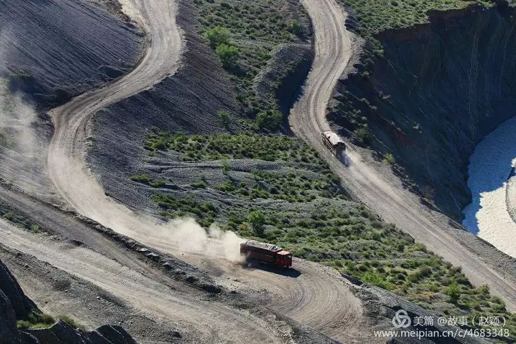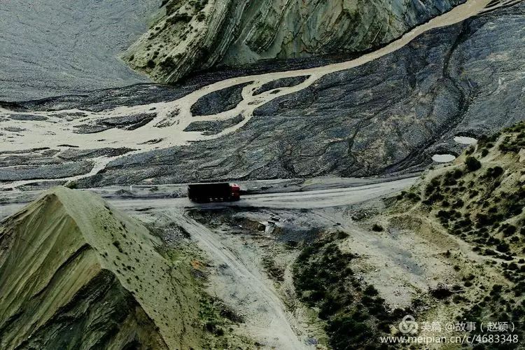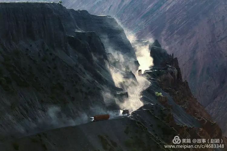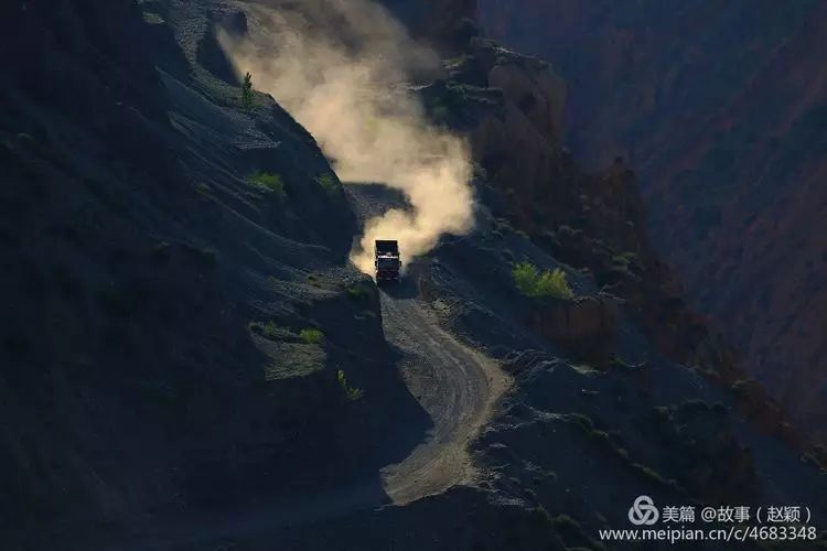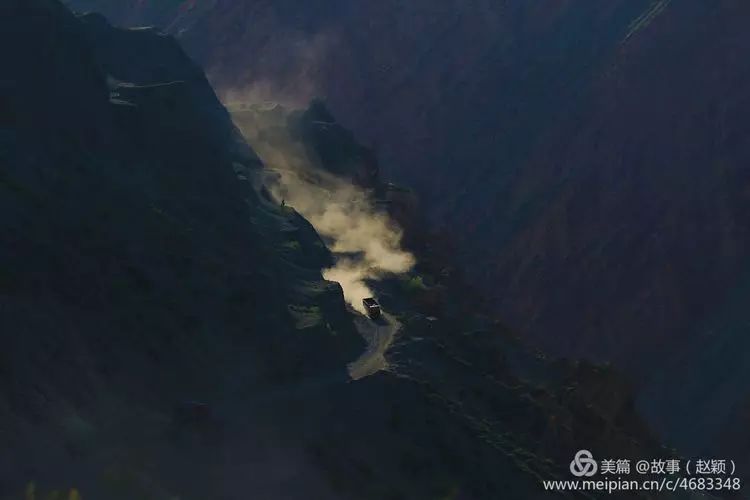 运输车常年不停地在天路上奔跑着,在谷底呈现着生活的轨迹,同时也成为了壮丽奇异峡谷景色中的一组不可却少的元素。