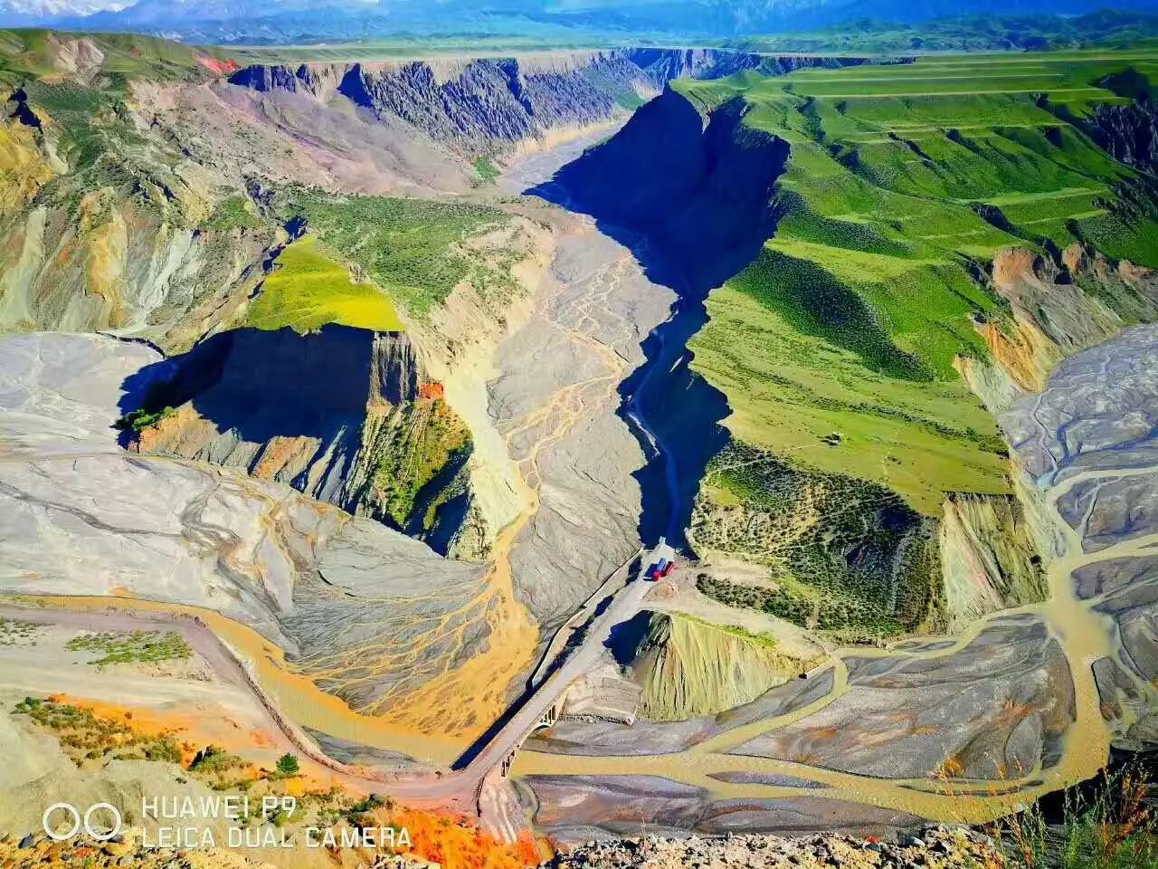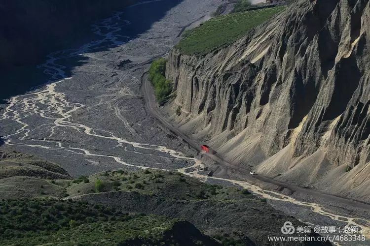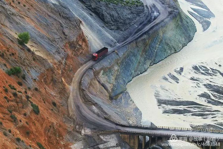 谷底深处的红色运输车,犹如一块小小的积木,摆放在那里,此刻在大自然面前,人类是多么的渺小和脆弱。