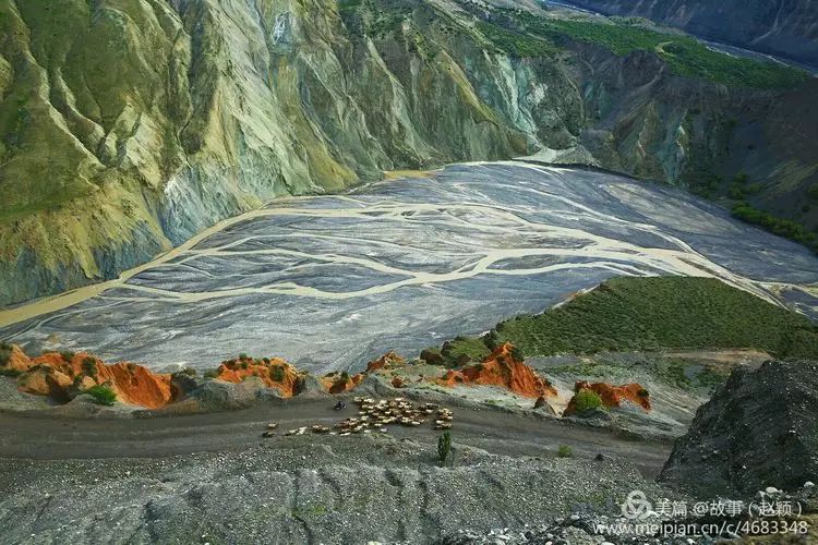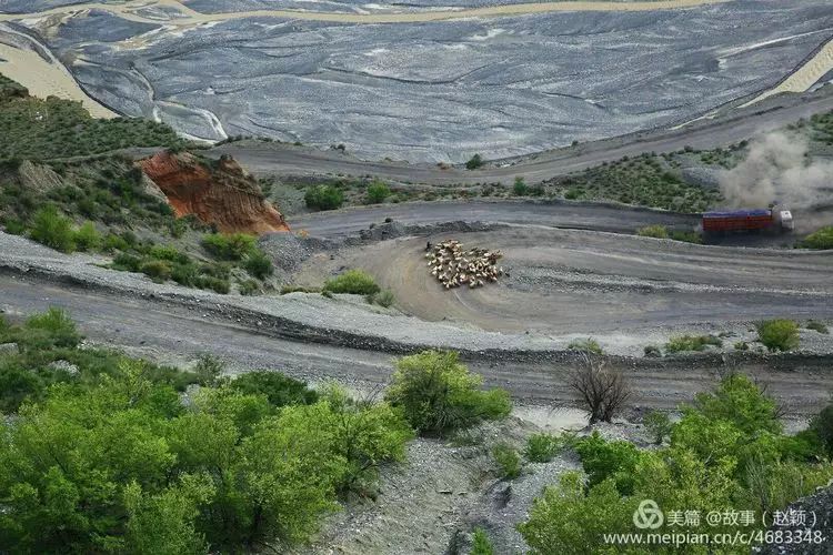 俯视谷底,羊群与行车和谐地交融着,交织着。各自有着各自的使命,在四季年华中,书写着自己的故事。