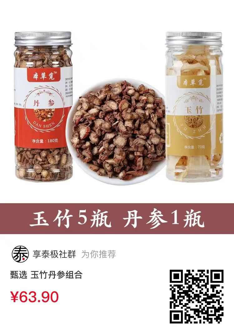 《滇南本草》里记载了一个两味药的小方子:玉竹15g、丹参7.5g,水煎服。