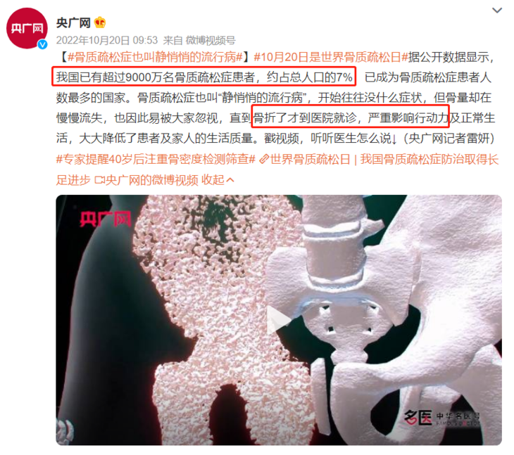 据公开数据显示:我国目前约有9000万骨质疏松患者,其中60岁以上的老年人患病的风险达到了36%左右。