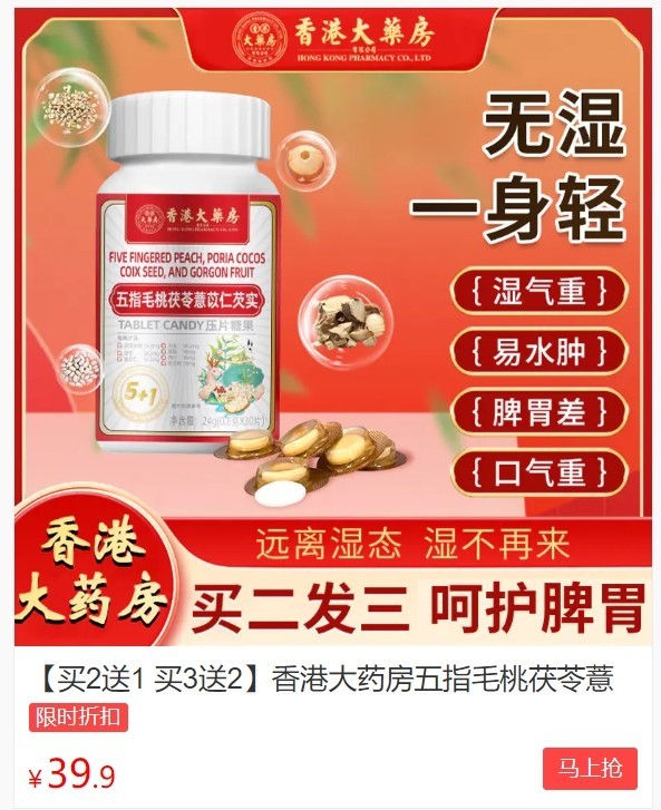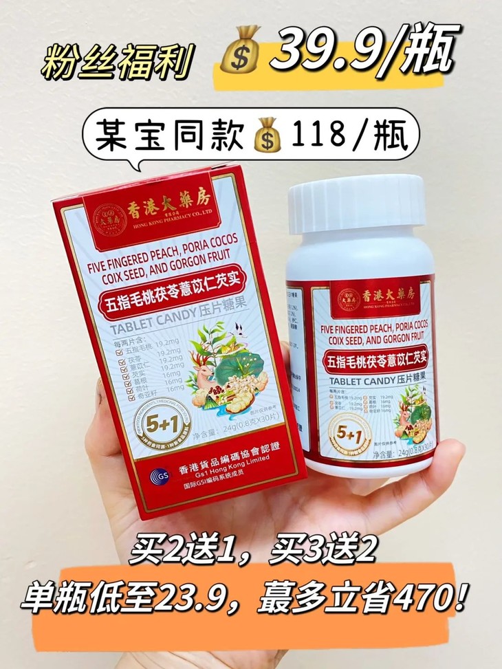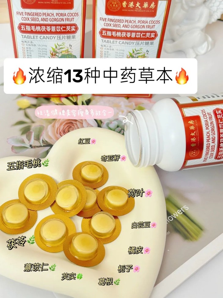 经过调研与亲身体验,小编找来了这款【香港大药房五指毛桃茯苓薏苡仁芡实压片糖果】
