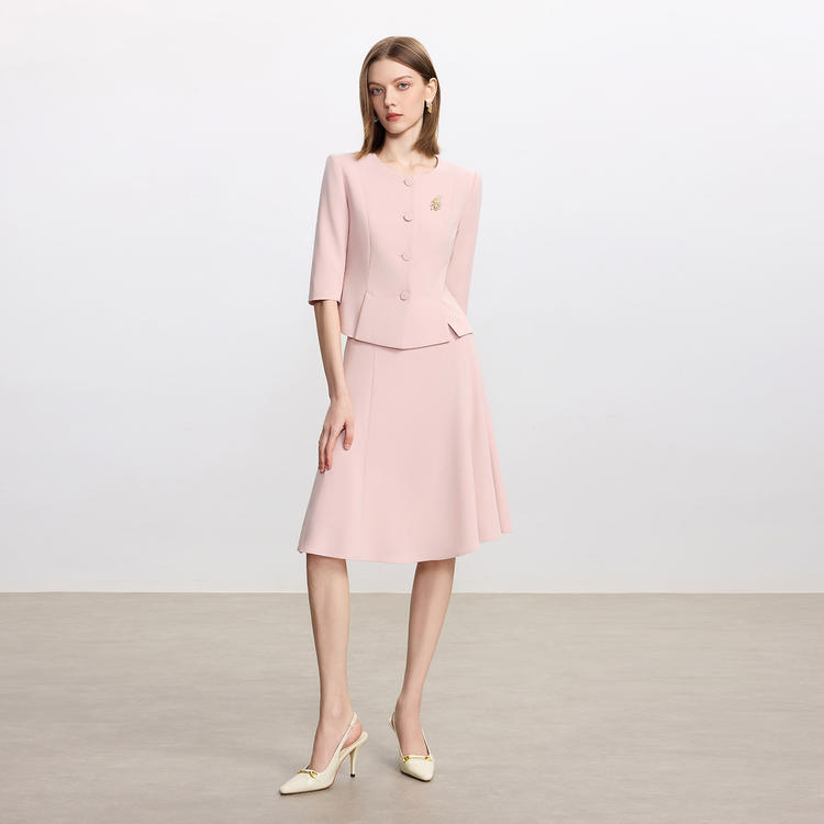 下身是高腰A字半裙,既端庄又不失轻盈。