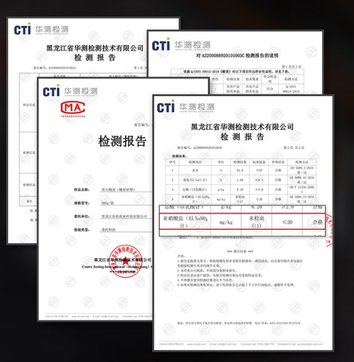但在黑大酸菜这里不存在,检测报告中,可以清晰看到亚硝酸盐未检出的字样!