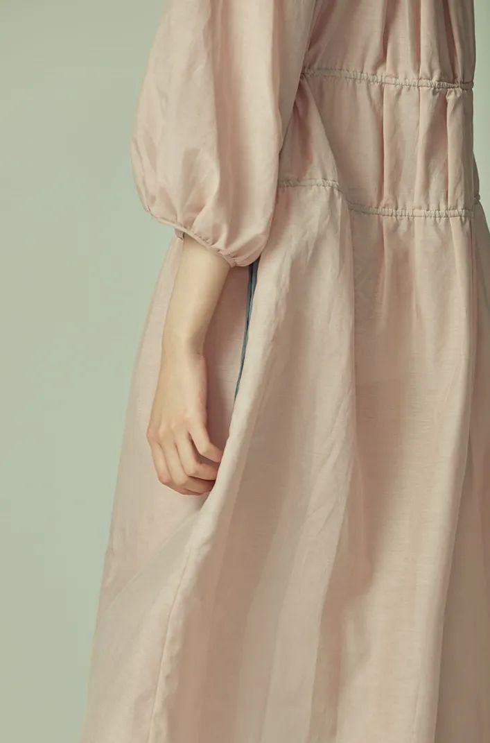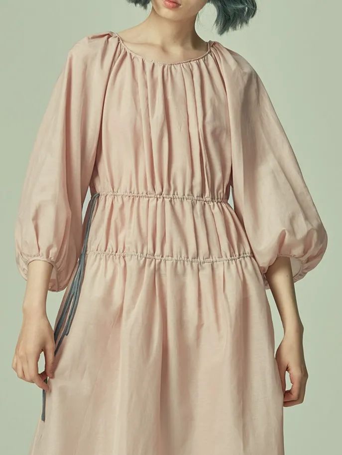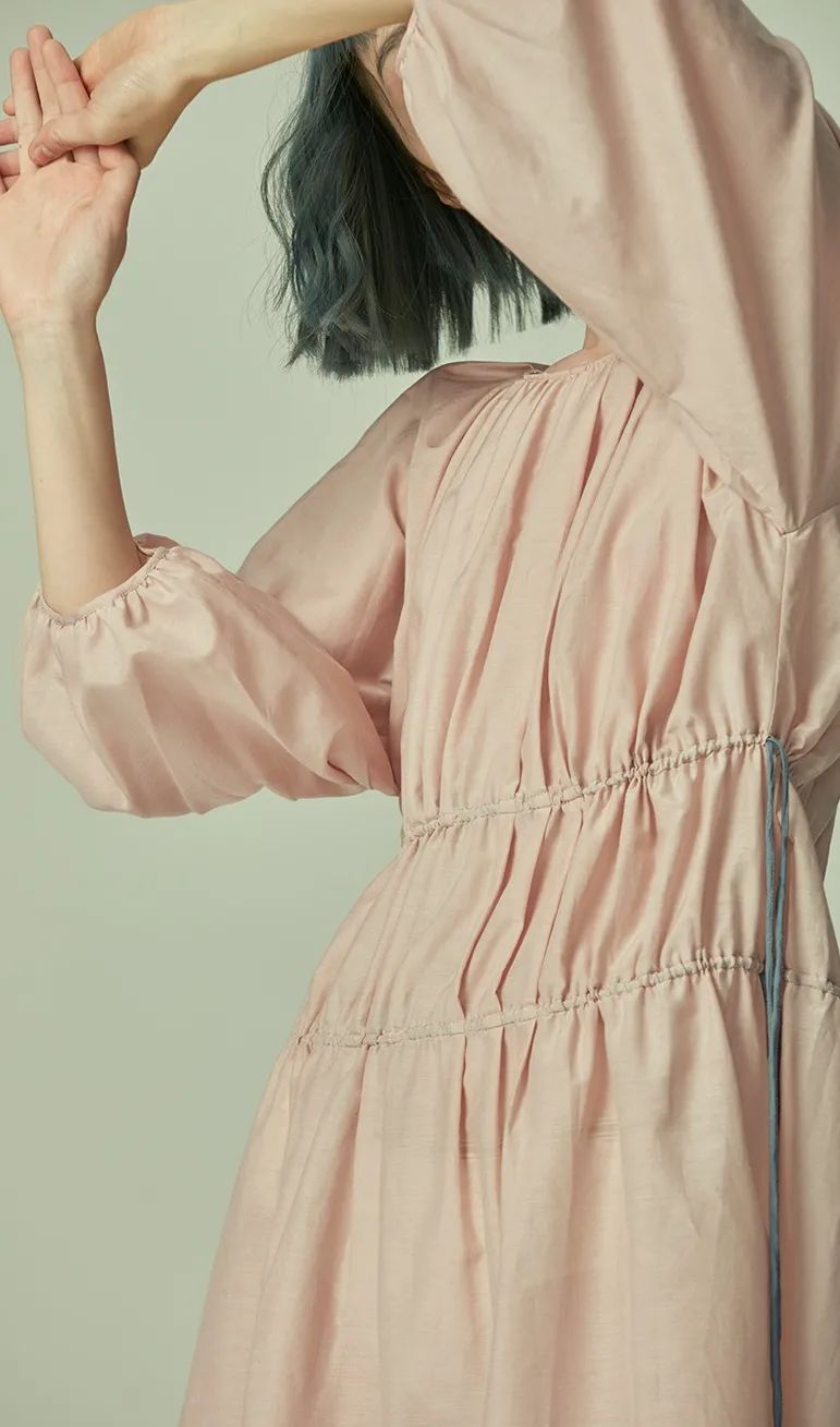 橡筋抽褶领口,根据心情进行改变。娇俏可爱的圆领,性感妩媚的一字领,今天的你会爱上什么样的自己呢?选择这件复古宫廷风连衣裙的你,似乎在说——