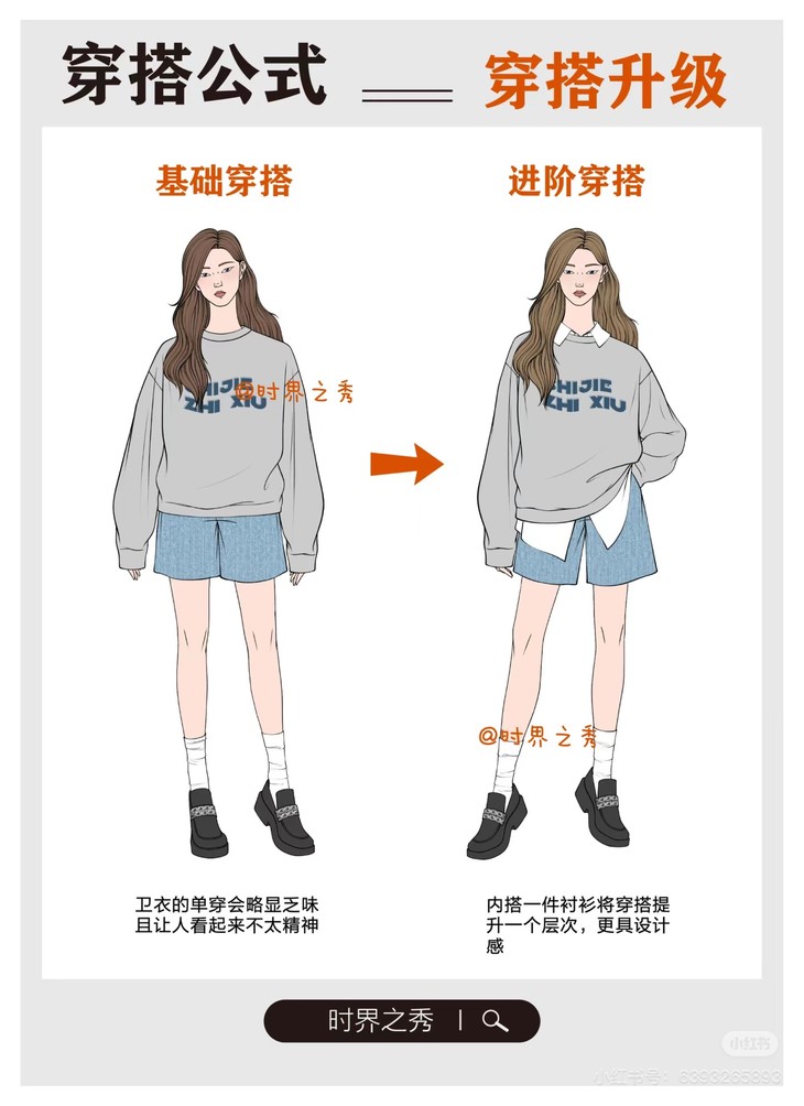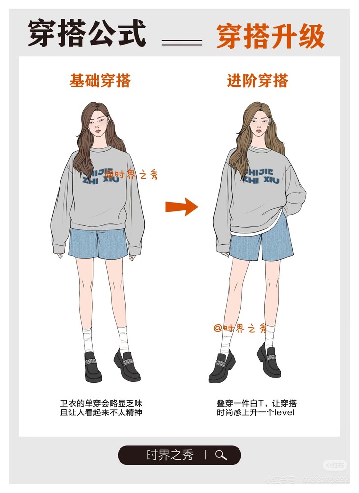 穿搭分享|卫衣穿搭秘籍,轻松提升时尚感!卫衣篇----卫衣作为衣橱里的必备基础单品,在春秋季节的穿搭中也是非常容易打造出松弛感的关键品类。但如何能更协调得搭配出最佳状态呢,今天给大家分享几个进阶穿搭小技巧: