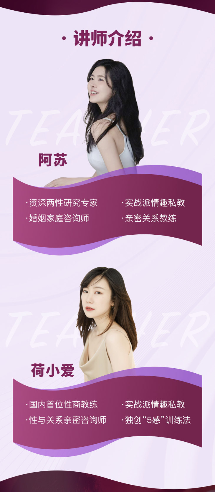 她们是圈内小有名气的性商教练,性与亲密关系咨询师 ,也是实战派情趣私教。独创的“5感”训练法,在3年的教育咨询工作中,成功帮助过10000+学员,数千对夫妻解决两性情感问题在这里,你那些隐于启齿的性事难题,都被可以归结为“性商”二字,在她们的指导下,让你床技满分!
