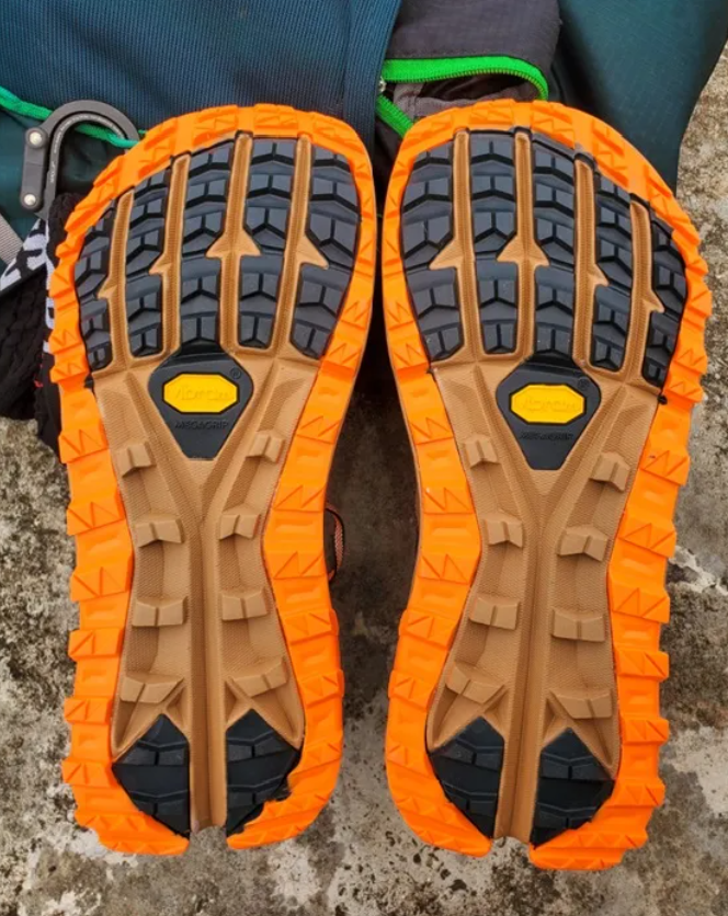 高温的季节,日照之下超过35度也不奇怪。穿着5小时 Olympus 5 的户外曝晒,脚掌仍然没有觉到憋得慌,高温之下中底仍然运作正常,脚掌仍能保持起步时的状况;由超轻薄比赛袜到加厚长途袜子,脚感如一,裹覆感很好,脚跟固定于正确位置,同时鞋楦不像一般2E的加阔鞋头产生空洞感,品牌技术 Foodshape™ 应记一功。