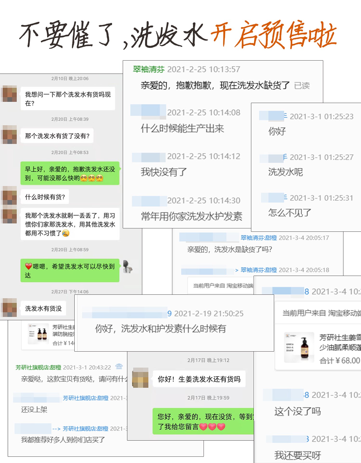 #生姜雪松洗发水预售#年前芳研社超级好用的生姜雪松洗发水断货,可把大家给急坏了,每天客服都收到无数催货信息,今天工厂终于跟我们确定到货时间,预计10天内就能发货哟!趁着3.8女神节,快来预定吧!