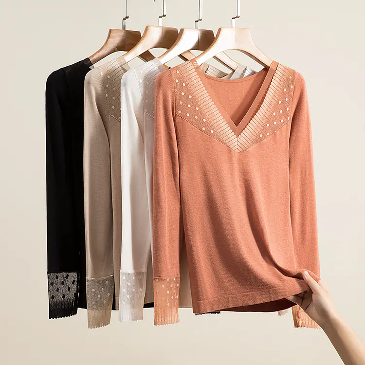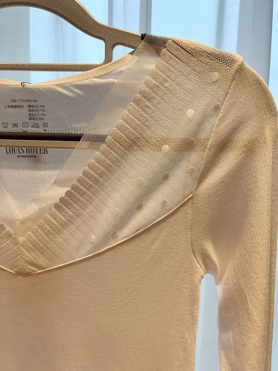 ③大V领口搭配蕾丝花边,内搭外穿皆可