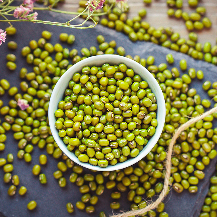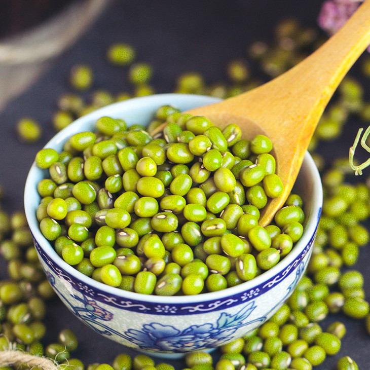 颗颗绿豆圆润饱满,鲜亮油绿,