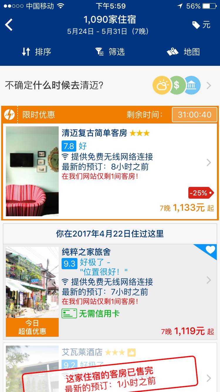 Booking的最大好处是即使你行程有变,也能免费取消,无需提前付款,到店再付。无论是奢华酒店,还是精致的青旅、民宿,APP上都有明确的分值与点评,让你知道真实的入住感受。