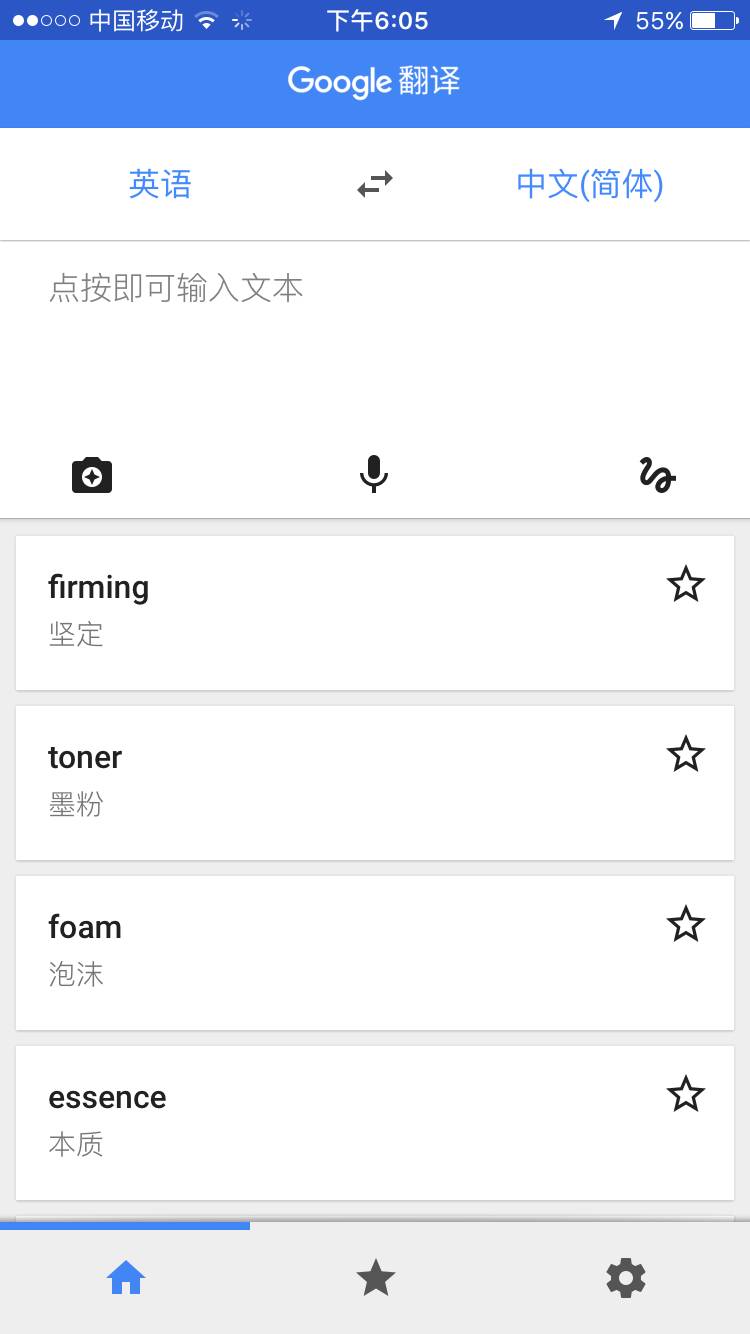 Google翻译APP可以翻译60多种语言的字词和短语。除了语音翻译外,还有一项强大的功能:相机翻译。无论你点菜还是在商场买东西时看不懂,利用Google翻译的相机功能,对准外文,就能立刻显示中文,点菜时也不怕看不懂啦!