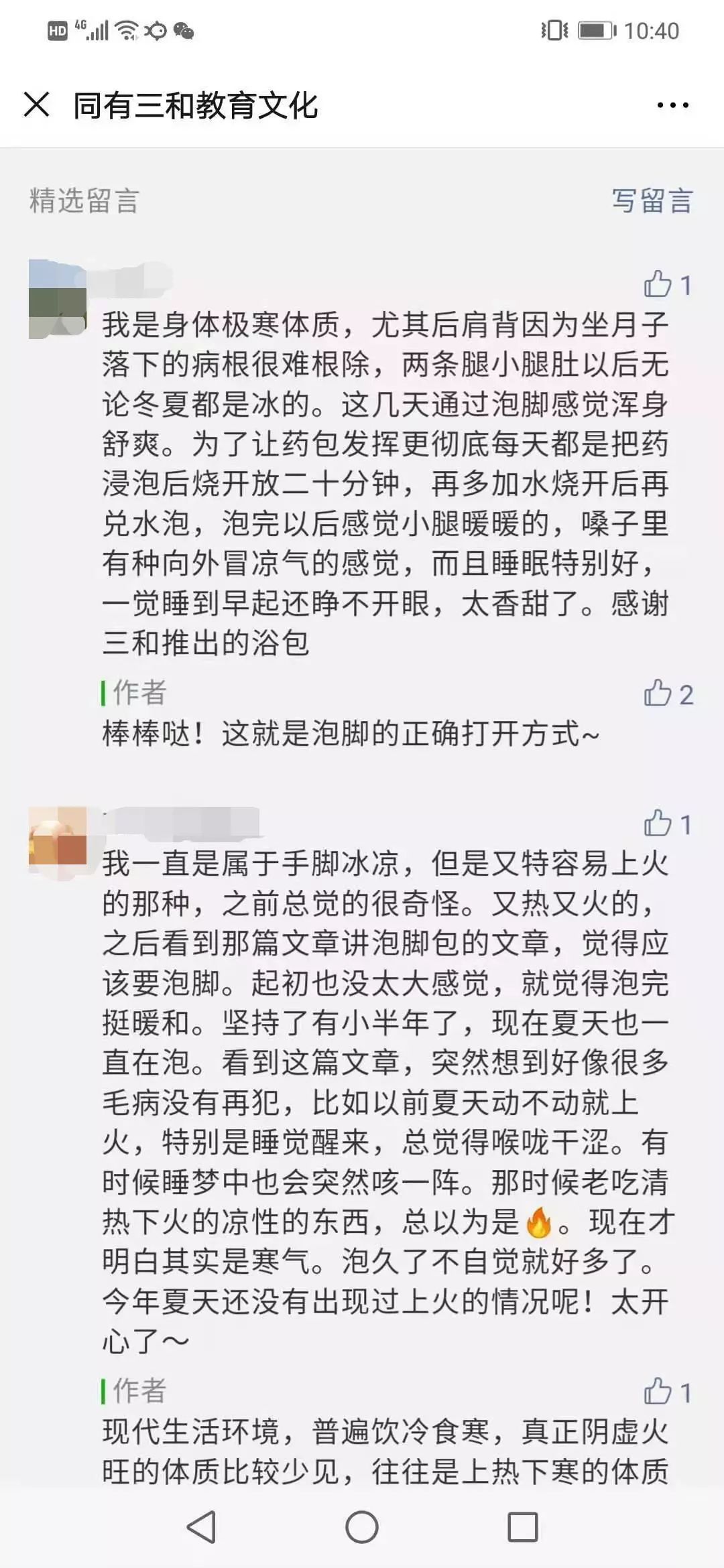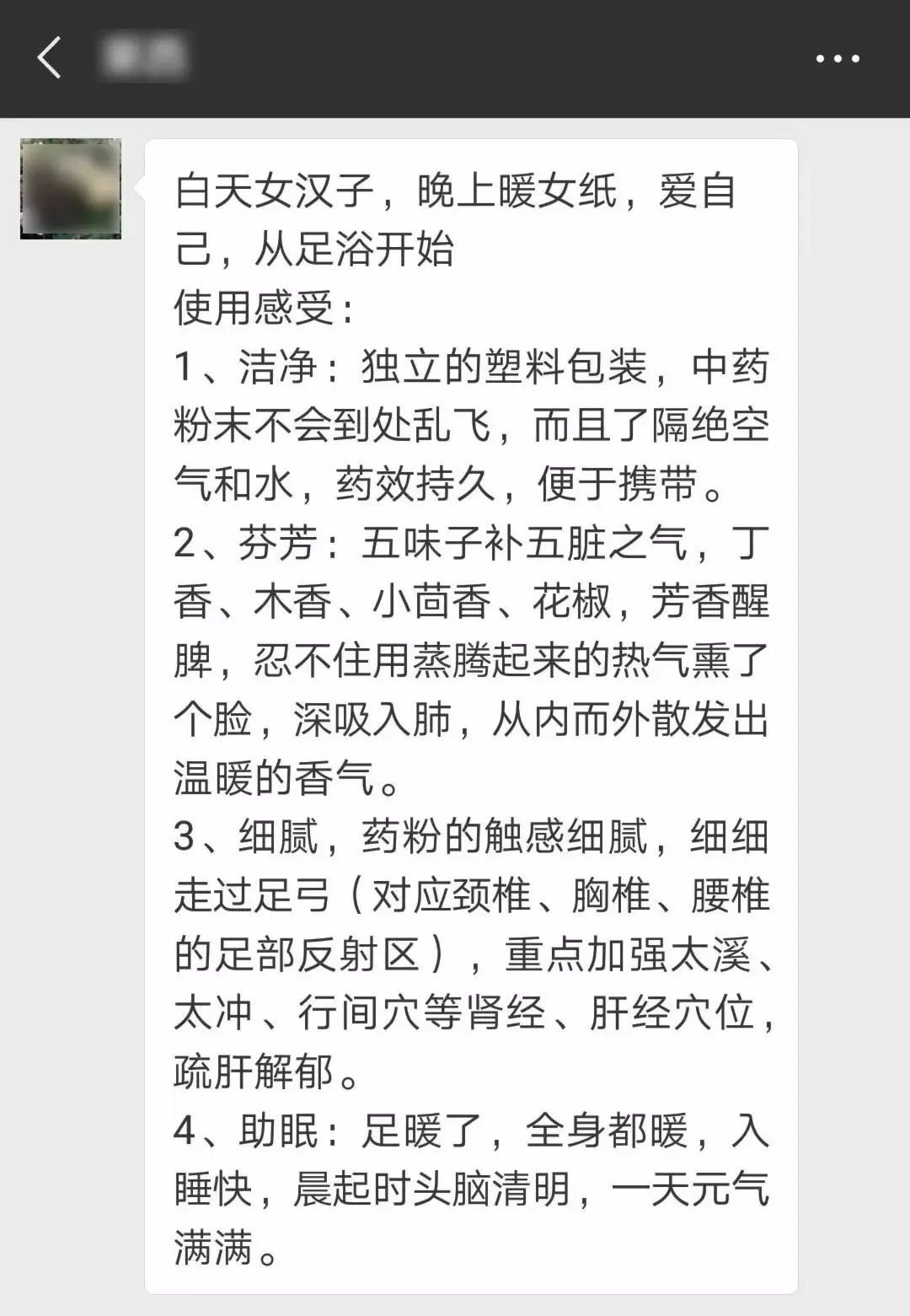 通过对老妈连续3天的测试,对三和温通足浴包效果比较有信心了,把一些使用心得也和同有三和工作的朋友进行了交流。