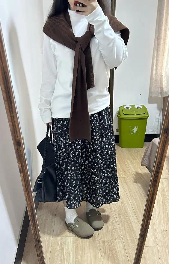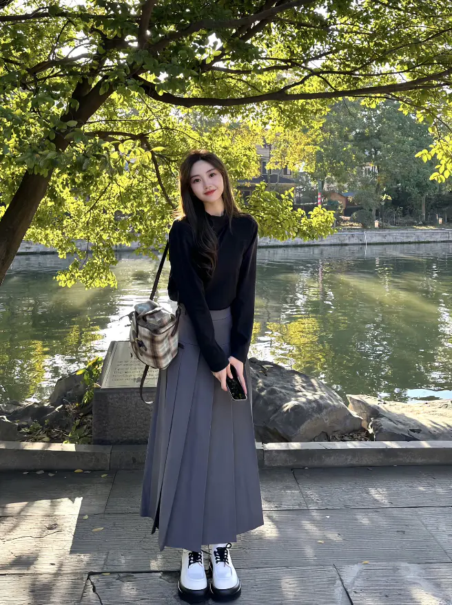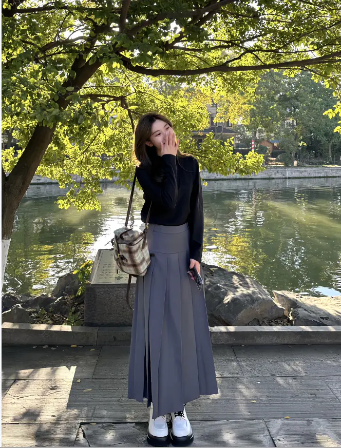 👜这套好适合通勤啊姐妹们!基础黑色打底衣搭配百褶裙,超级显瘦呦~