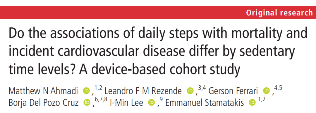 研究截图此外,无论每天久坐时间长短, 每天多走4000-4500步都能带来50%的益处。