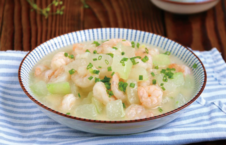冬瓜性寒味甘,具有清热生津,僻暑除烦等功效,所以冬瓜在夏日服食尤为适宜。虾仁则具有保护心血管、通乳汁、调养补虚的功效,将冬瓜与虾仁一起烹煮,不仅味道非常鲜美,而且营养也丰富全面。