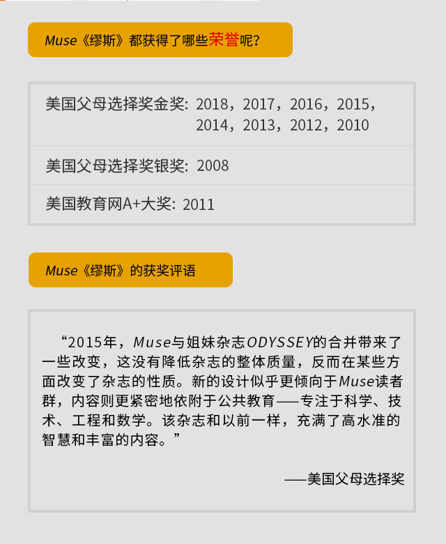 Muse《缪斯》(9-14岁 自然科学类),像个充满探索欲的青春少年,引领读者探讨前沿科技、宇宙未来,批判性思维体现得淋漓尽致。