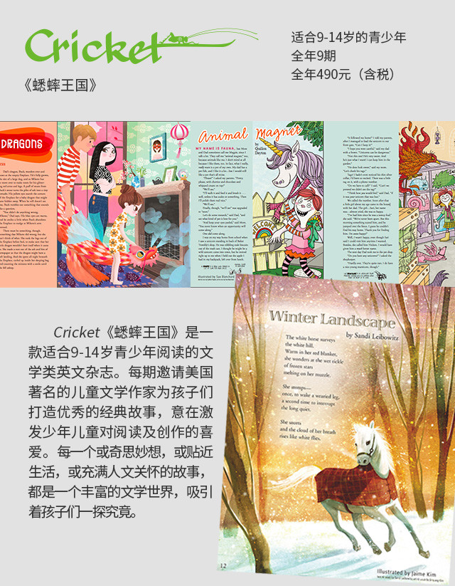 Cricket《蟋蟀王国》(9-14岁 儿童文学类),王牌杂志,传承经典,珍藏级插画,优美的文字,使她成为北美儿童文学杂志的传奇。