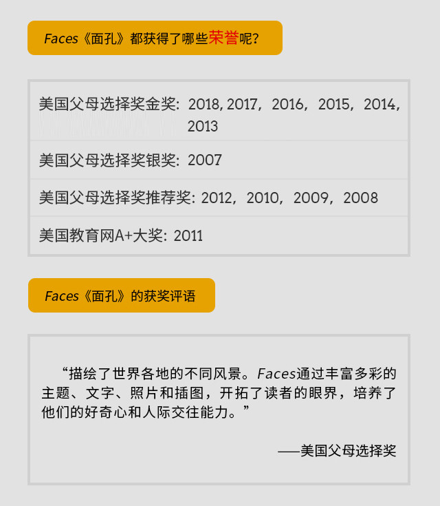 Faces《面孔》(9-14 岁 世界文化类),厚重的历史积淀,浓郁的人文情怀。