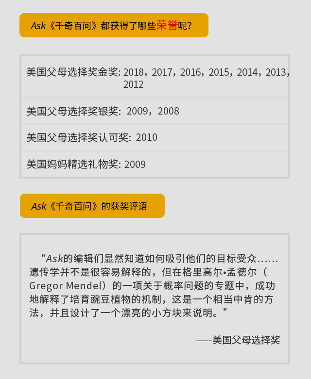 Ask《千奇百问》(6-9岁 自然科学类),提供了观察世界的更多视角,当你无法招架小朋友的追命连环问时,给ta一本Ask吧!