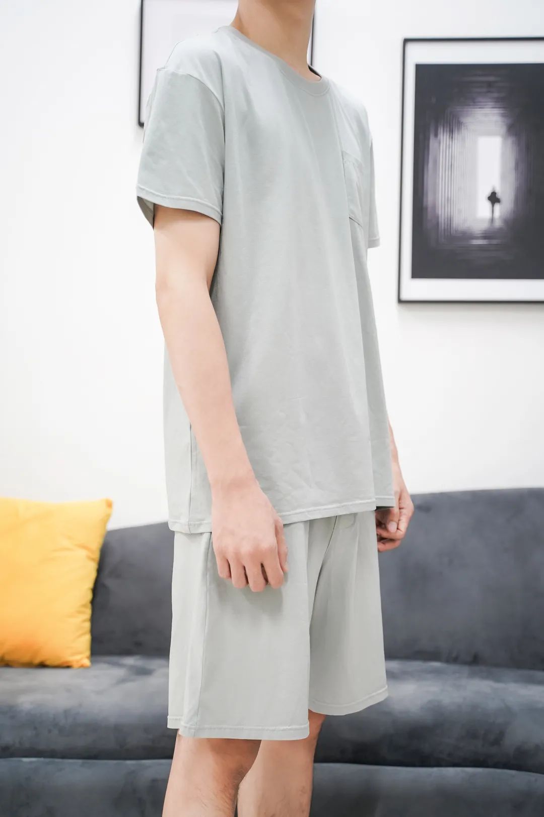 整体是短袖上衣+中裤的组合,简约大方,在外走动不会闷热,在空调房里呆着也不容易着凉。