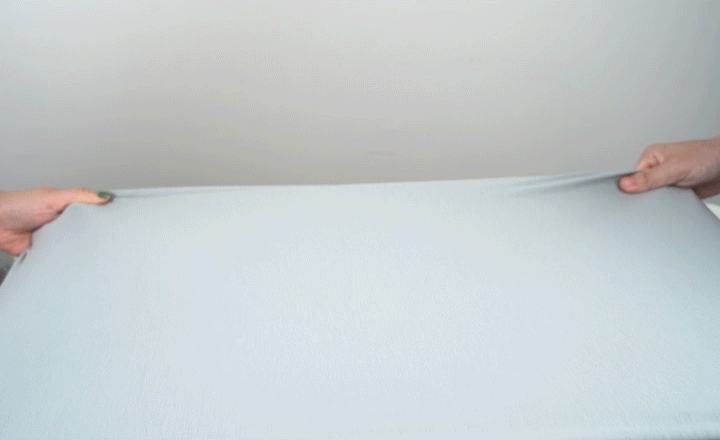 它的延展性有多好呢?我们随意在面料放下一个玩具球,高弹面料瞬间将球面弹起。