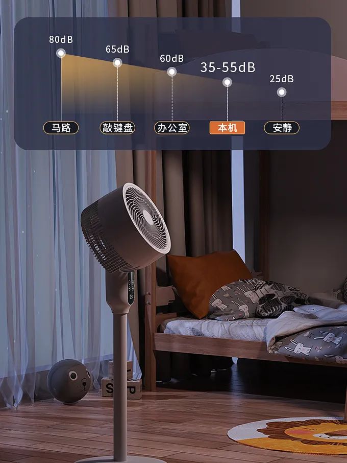 声音也很小,轻柔柔的。有了它,睡眠浅的家人夜间开循环扇也不怕被吵到~