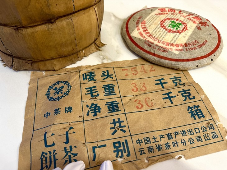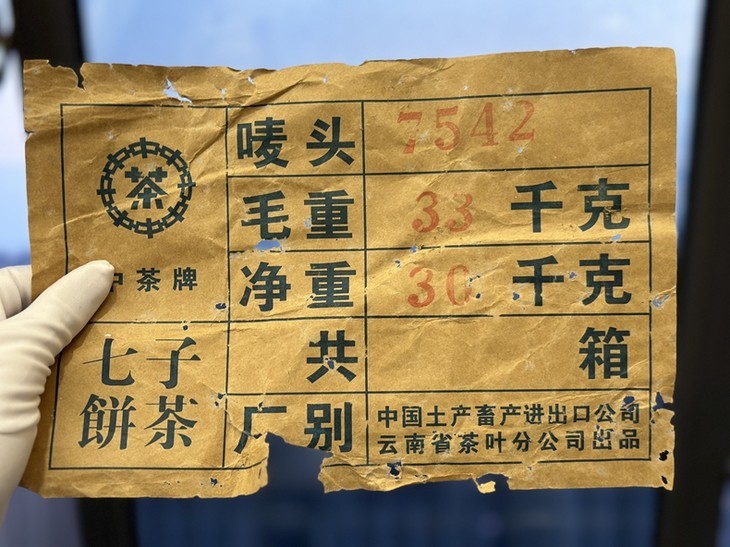 所以,郭少华找到一线茶厂老职工马良辰拿出自己“私藏”的!1990年薄纸小七版(尖出高脚七)7452青饼绿印!!!