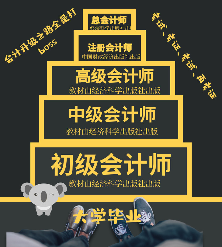 如图所示,当你选择走上会计之路,那就是一条升级打boss之路,一路艰辛一路困苦,赤裸裸的考试之路,谁懂会计心?