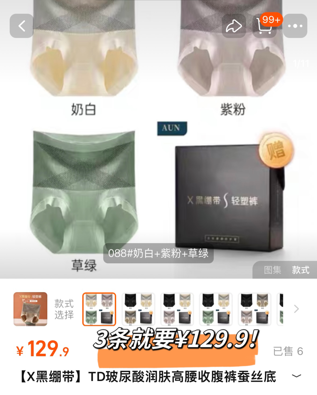 又软又糯的面料,冬天穿不会冻pp;夏天穿不会闷pp;一条可以陪你走过春夏秋冬。这条三合一内裤,在网上价格一盒3条要129.9元。