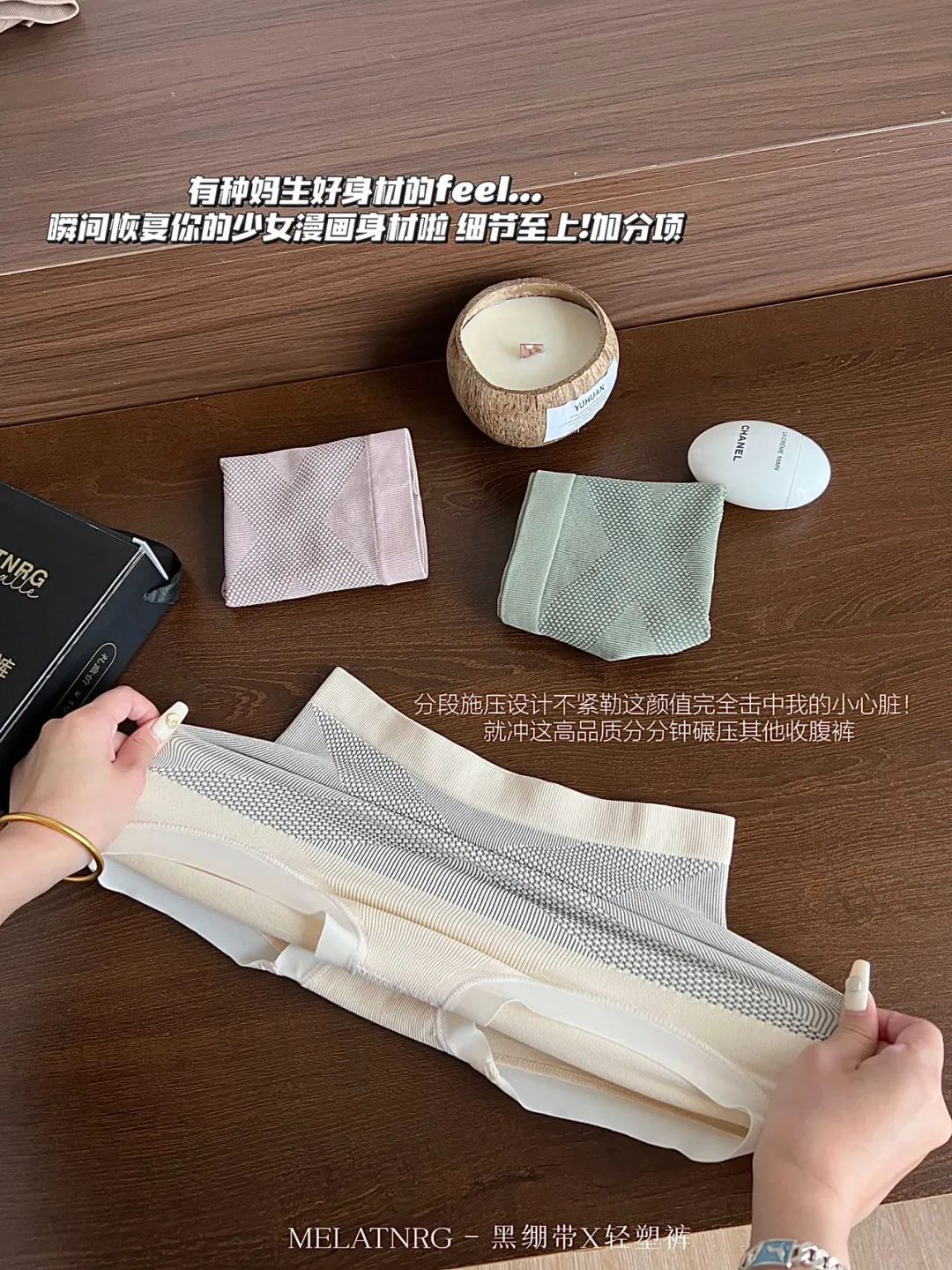 可能很多姐妹跟我一样,对“塑身裤”的认知还停留在“钢圈扎人”的认知上,比如这种👇其实呢,现在收腹裤已经卷到“收腹裤、内裤”傻傻分不清楚,甚至可以代替内裤,一天24小时穿着的境界了。就像MELATNRG黑绷带轻塑裤足以颠覆我们的以往认知。从正面看,肚子真的小了一大圈,本来能揪出一大坨肚腩的,穿上基本收住了。采用的是「分段式微压收腹」的原理,让你健康塑形,收腹+提臀一步到位。