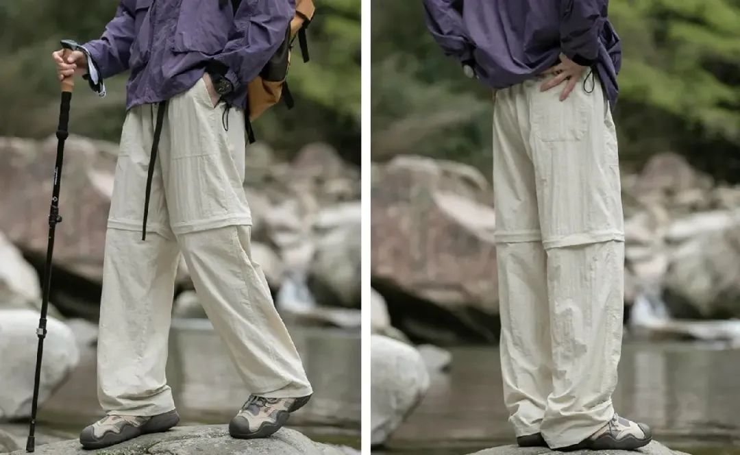 穿着它去溯溪、露营也不怕被水打湿,湿身的尴尬。(溯溪涉水时还能把裤腿拆了当短裤哦)