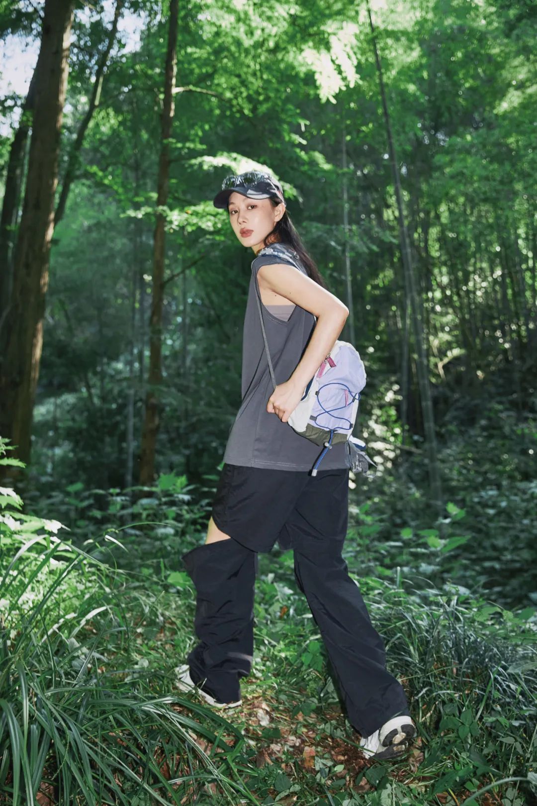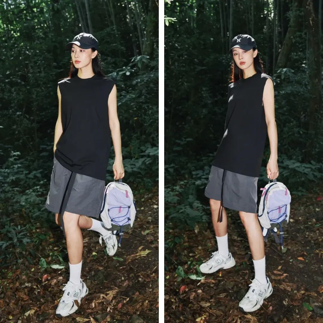 搭配防晒衣,夏日户外感十足。