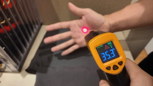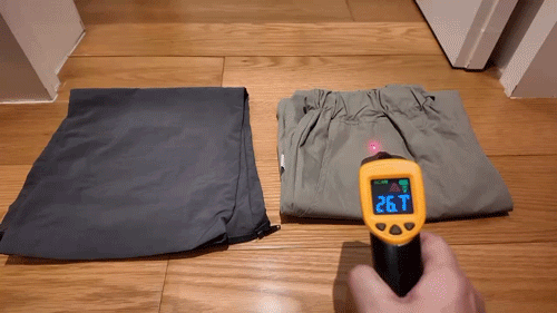 普通工装裙和NICESELF工装裤在室温下进行测试,这条裤子足足低了1.6℃!
