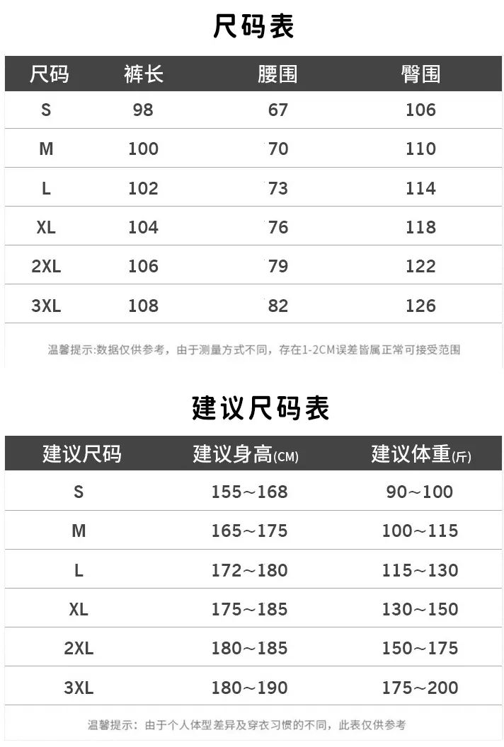 裤子是男女同款的,下面是尺码参考: