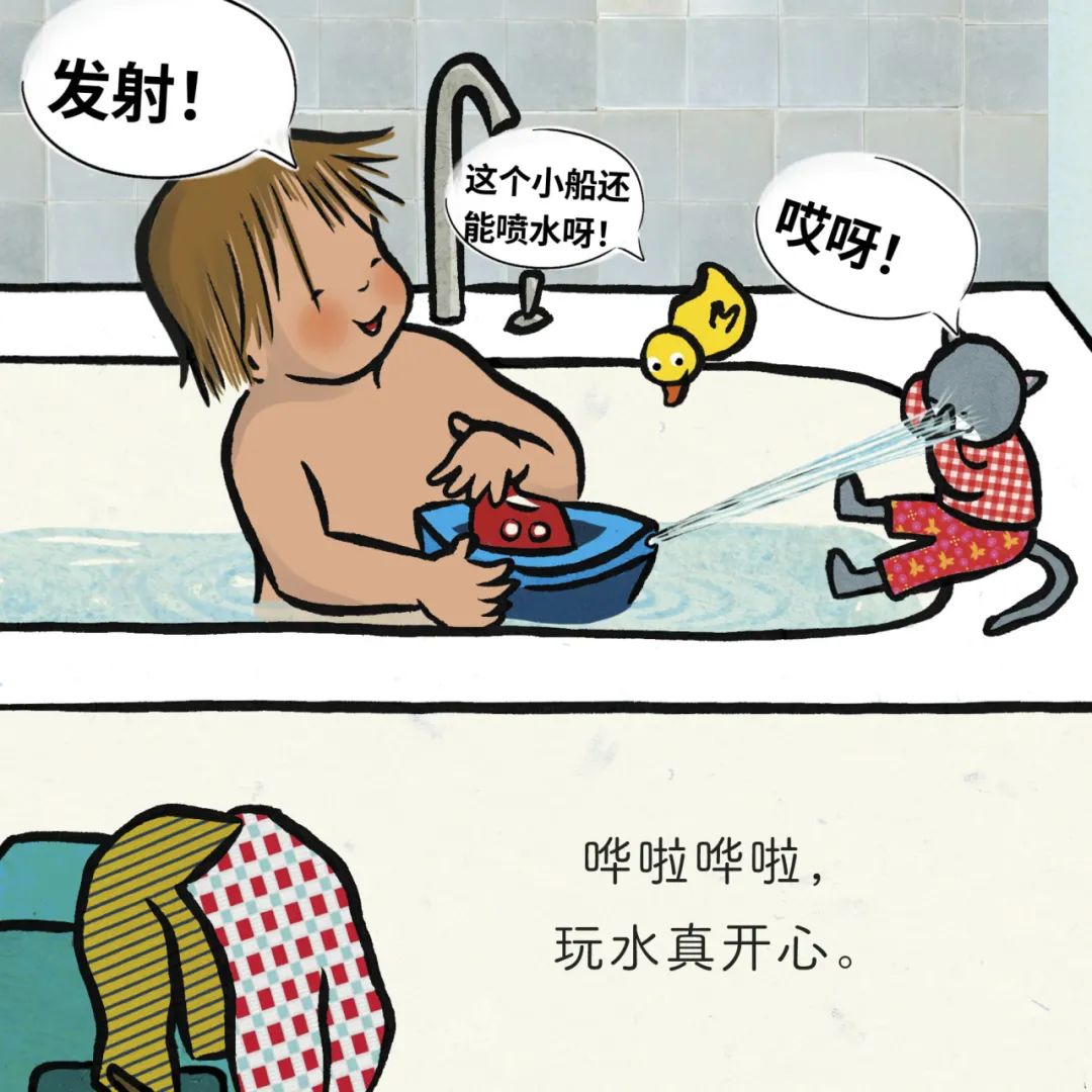 相对比早期创作的行为习惯,这套新书的画风更加成熟——在绘本中,我们可以看到,小主人公长大了、变高了,头发也长长了。作者把孩子的表情、动作刻画的异常细致,就像自己家孩子站在我们的面前。