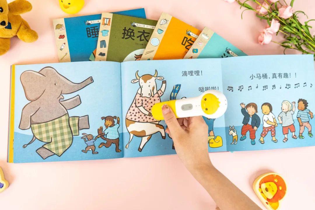 笨拙的小喵喵和她机灵的小主人就这样活灵活现地展现在我们面前。点读笔把小朋友和自己玩偶朋友的日常生动演绎出来,小宝宝超有代入感!