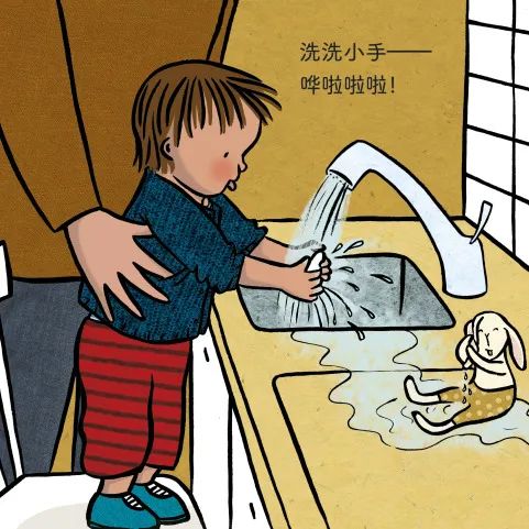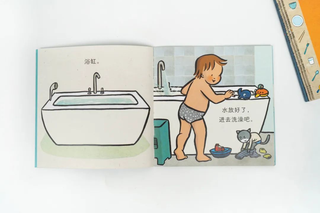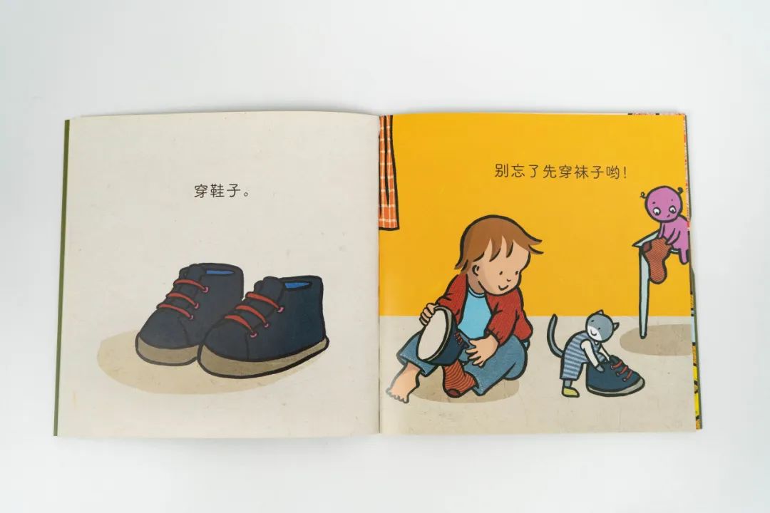 同时在绘本中,还采用了一事一物对应的方式,不仅能够给予孩子更明确的指令、让孩子能够理解下一步应该怎么做,还可以让宝宝们潜移默化学认知!