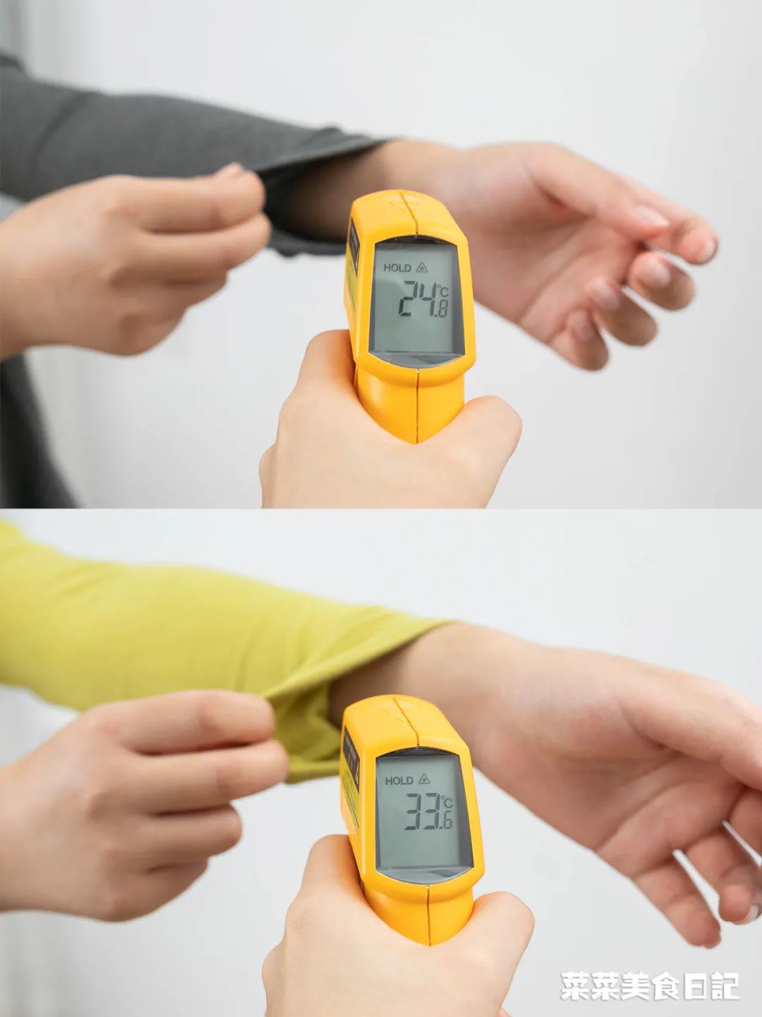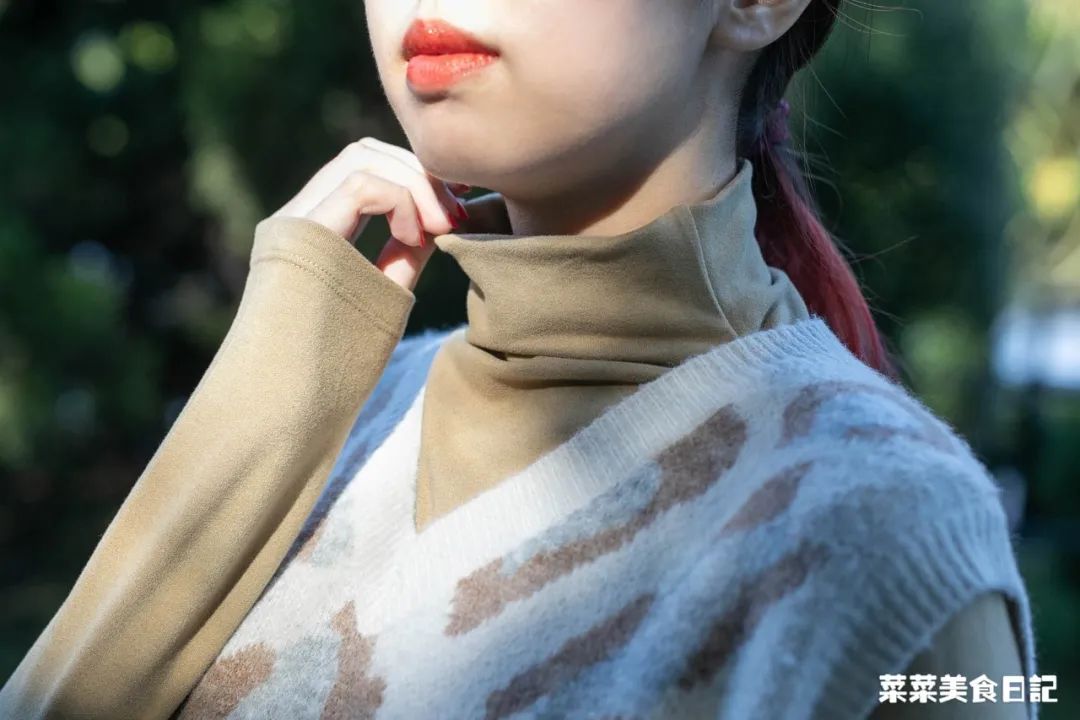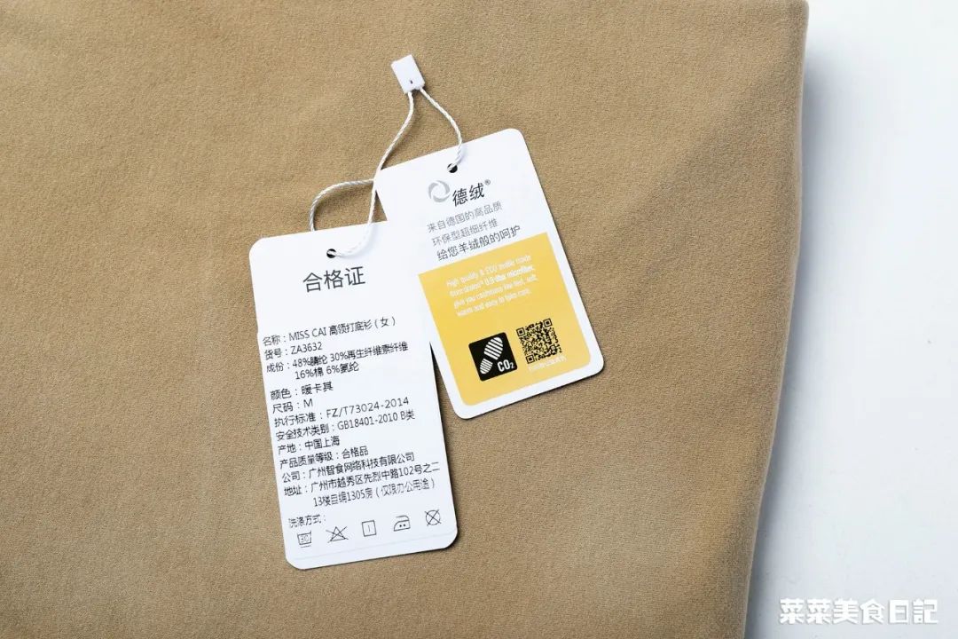 说到这,可能有朋友有疑问了:菜菜,德绒挺常见的啊,为啥要定制?今年双11榜单,半高领打底衫No.1,足以说明了它的地位!但依我对德绒市场的了解:这里面,一大半可能是假德绒!德绒(darlon)是德国拜耳公司研究十年做出的专利纤维,制成的面料特点是极致柔软、蓬松、保暖、耐用、透气、速干······这也意味着成本增加,衣服价格增加,最终导致的结果是:真假难辨,市场混乱。某宝搜一搜德绒,同一件上衣,价格能从49翻到299。之前浙江卫视的民生节目做过调查,同为内衣,德绒保暖系数比发热纤维还高!足足翻了一倍!菜菜也真心希望大家在秋冬都能有一件德绒打底来保暖,过个暖冬。定制一件优质德绒打底衫,让你们花小钱,买到大温暖。我们衡量再三,决定用拜耳授权的生产商生产的0.9超细旦膨体德绒!划重点,这是拜耳常规款的升级版,面料成本翻了1.5倍,但保暖指数翻一翻!且确保每一件打底衫都达到230g含量,膨体德绒含量48%!(我之前买的一件,含量仅20%)南方一件管暖,北方打底堪比羊绒,让人一穿就暖得舍不得脱下来~因为用料太舍得,加上我们还加入再生纤维、棉、氨纶,肤感弹性都加倍!最终拿到手的打底衫摸上去如同羊绒般细腻的手感,也有磨毛般的蓬软绒毛。穿着就感觉身体像被软糯的羊绒柔柔包围着,冬天再冷,也变得令人期待起来。所以今年有机会自己定制,我就笃定要做最时髦的打底