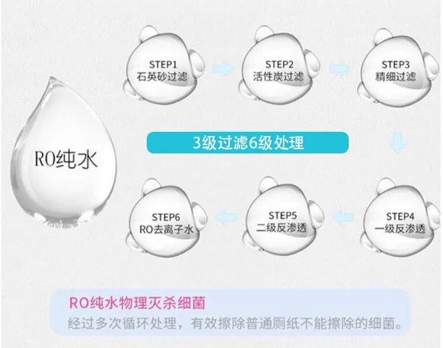 花萃护理湿巾全都采用RO纯水,经过反渗透技术3级过滤6级处理,给你更多一层的守护~