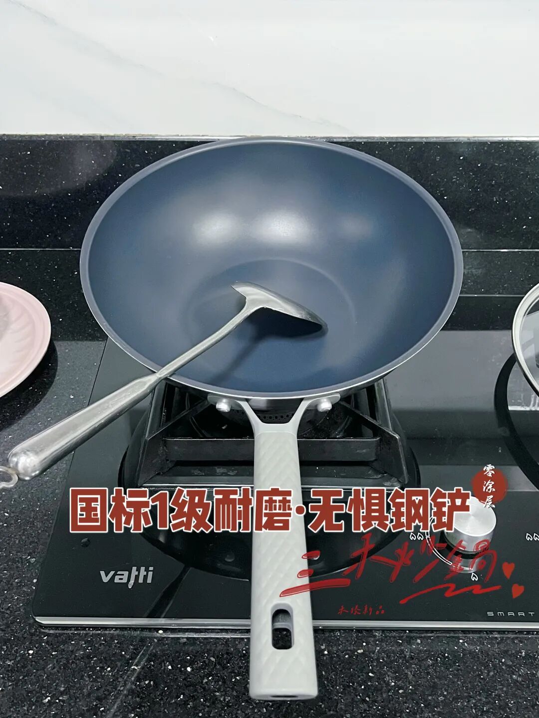 【国标 I 级不粘认证】三禾·禾臻0涂层微纳不粘炒锅。