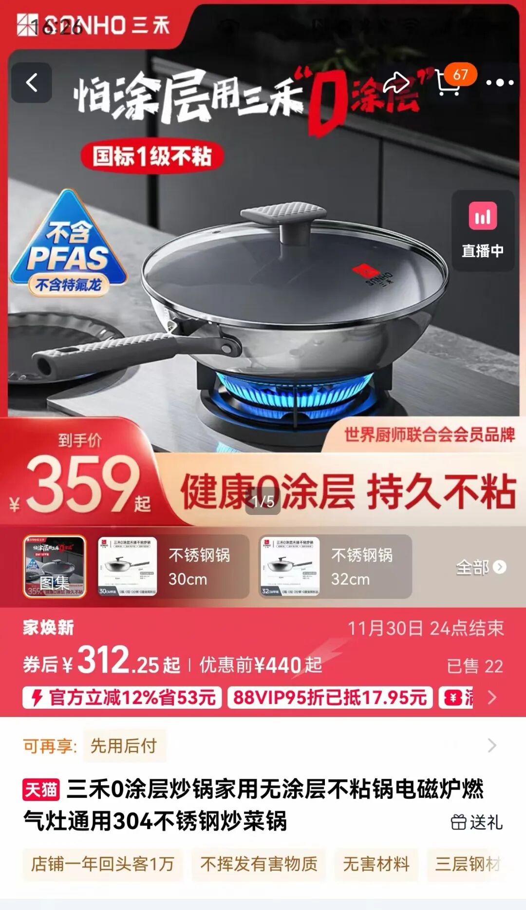 三禾禾臻0涂层炒锅,凭借专利技术彻底颠覆了这一局面。