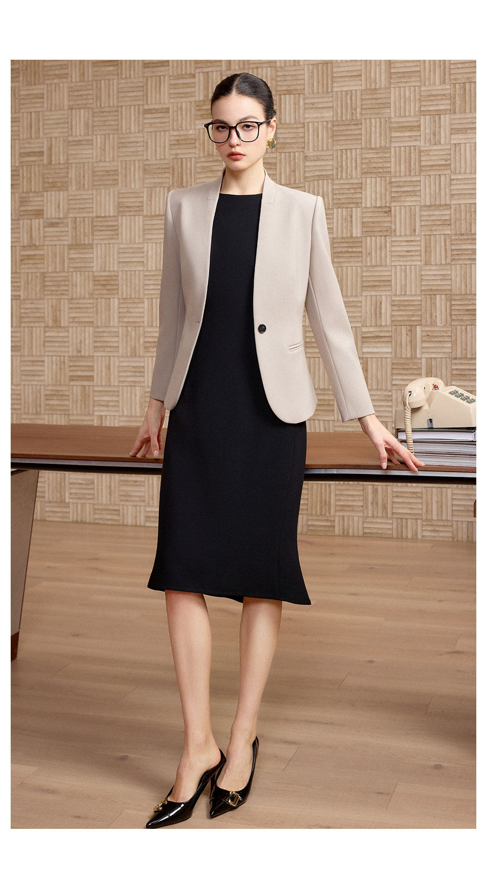 内搭黑色鱼尾裙,垂顺修身,裙摆微扬勾勒出柔和曲线🌿简约剪裁不刻意张扬,却在细节里藏着高级感,通勤、会客都适配。