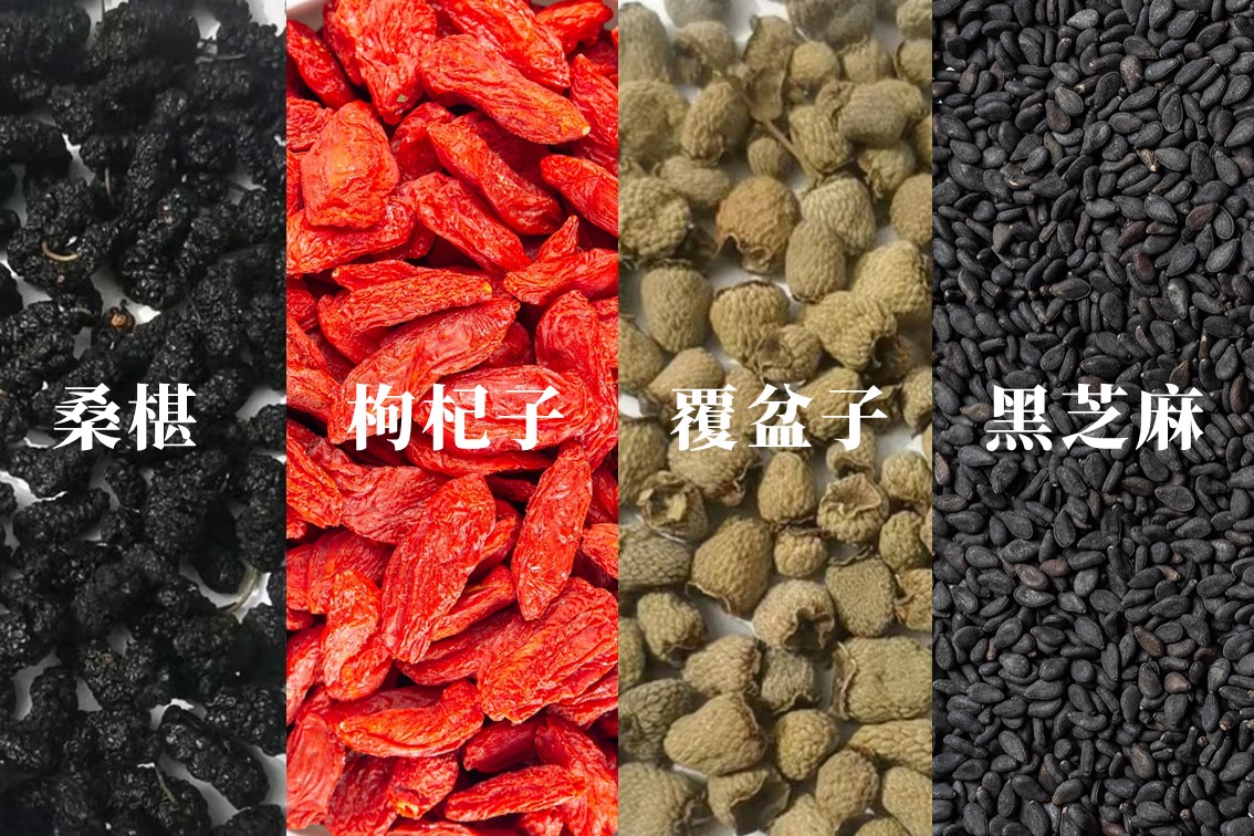 此时「黄精固黑膏」是非常好的一个选择,搭配了多种黑色的药食:黄精、桑椹、黑芝麻、枸杞子、覆盆子、牡蛎、芡实。