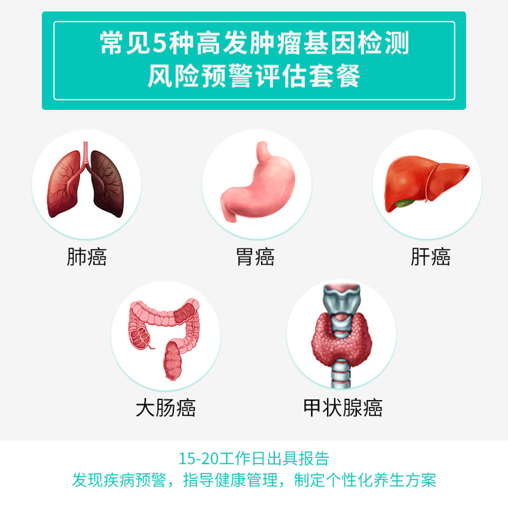 一次性可筛查肺癌、胃癌、肝癌、大肠癌、甲状腺癌5种常见恶性肿瘤,更精准预防高发癌症!
